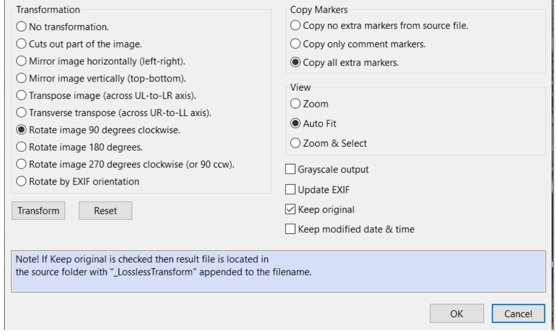 - Copy all extra markers - Preserves miscellaneous markers found in the source file, such as JFIF thumbnails and Photoshop settings. In some files these extra markers can be sizeable