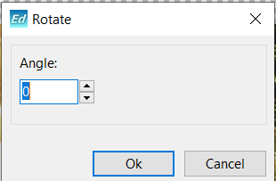 UsageEditor Editor - Rotate Previous Top Next Angle - Rotation angle ex. 90 degrees CW (Clock Wise) Antialising - Basically smooths rough edges Ok - Makes changes Cancel - Cancels without making changes