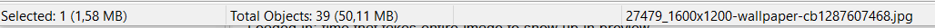- Total Objects: xxx (xxx,xxx KB) shows total amount of files and space taken in KB,MB,GB etc, Note: this calculates all files not only image files